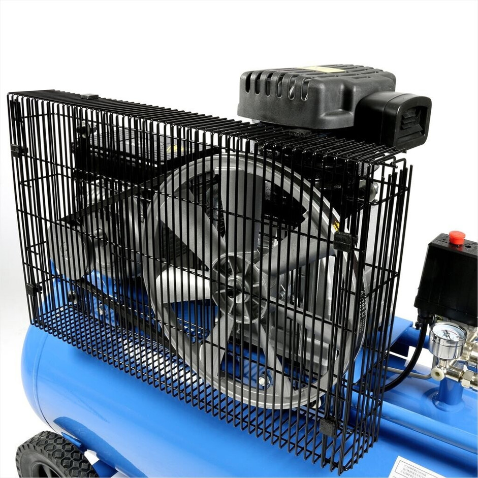 Für zusätzliche Sicherheit sorgen das Sicherheitsventil und der Überlastungsschutz, die dafür ausgelegt sind, Sie und das Gerät zu schützen. Mit den kompakten Abmessungen von 123 x 44 x 74 cm und einem Gewicht von 69 kg ist der Kompressor sowohl mobil als auch stabil.