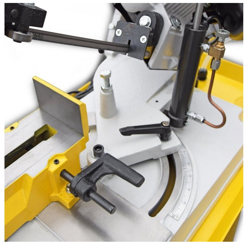 Mit einer Leistung von 825 Watt verfügt diese Metallbandsäge über die nötige Kraft, um auch anspruchsvolle Materialien problemlos zu bearbeiten, und das bei einem Gewicht von 89 kg, was die Handhabung erschwert.