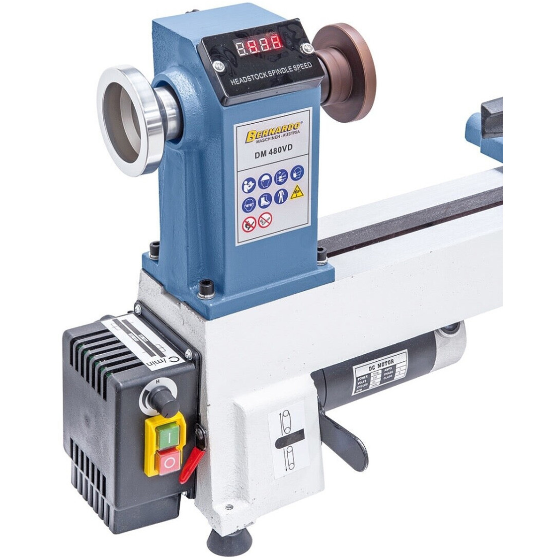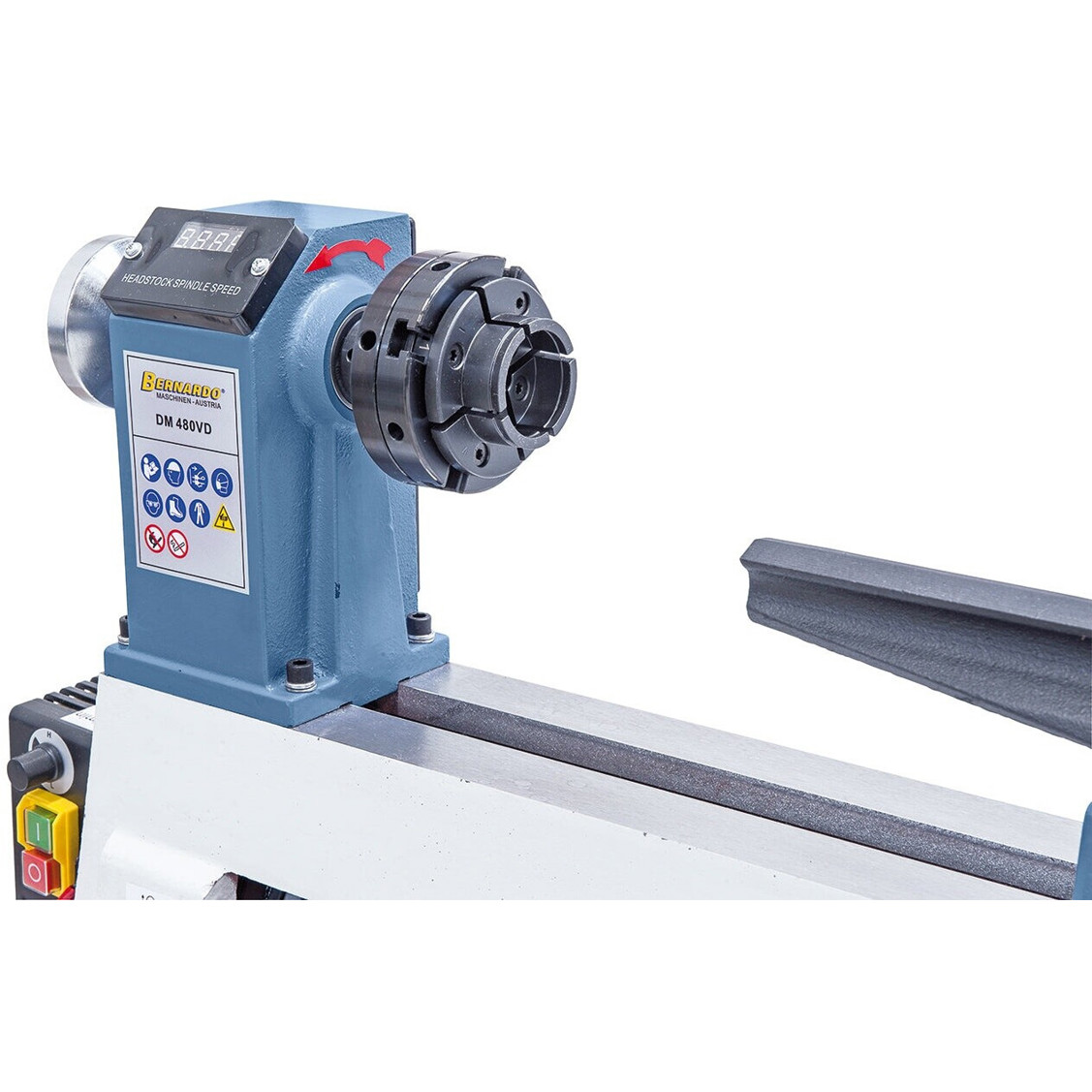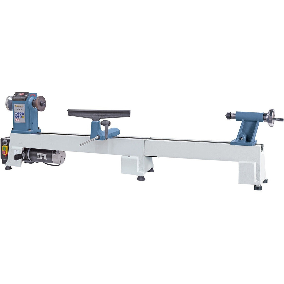 Das Gehäuse in den ansprechenden Farben blau und weiß macht die Drechselbank nicht nur funktional, sondern auch optisch ansprechend. Zusätzlich ist die Maschine mit einer praktischen LED Anzeige und einer Bettverlängerung ausgestattet, die Ihnen bei der Bearbeitung großer Werkstücke hilft.