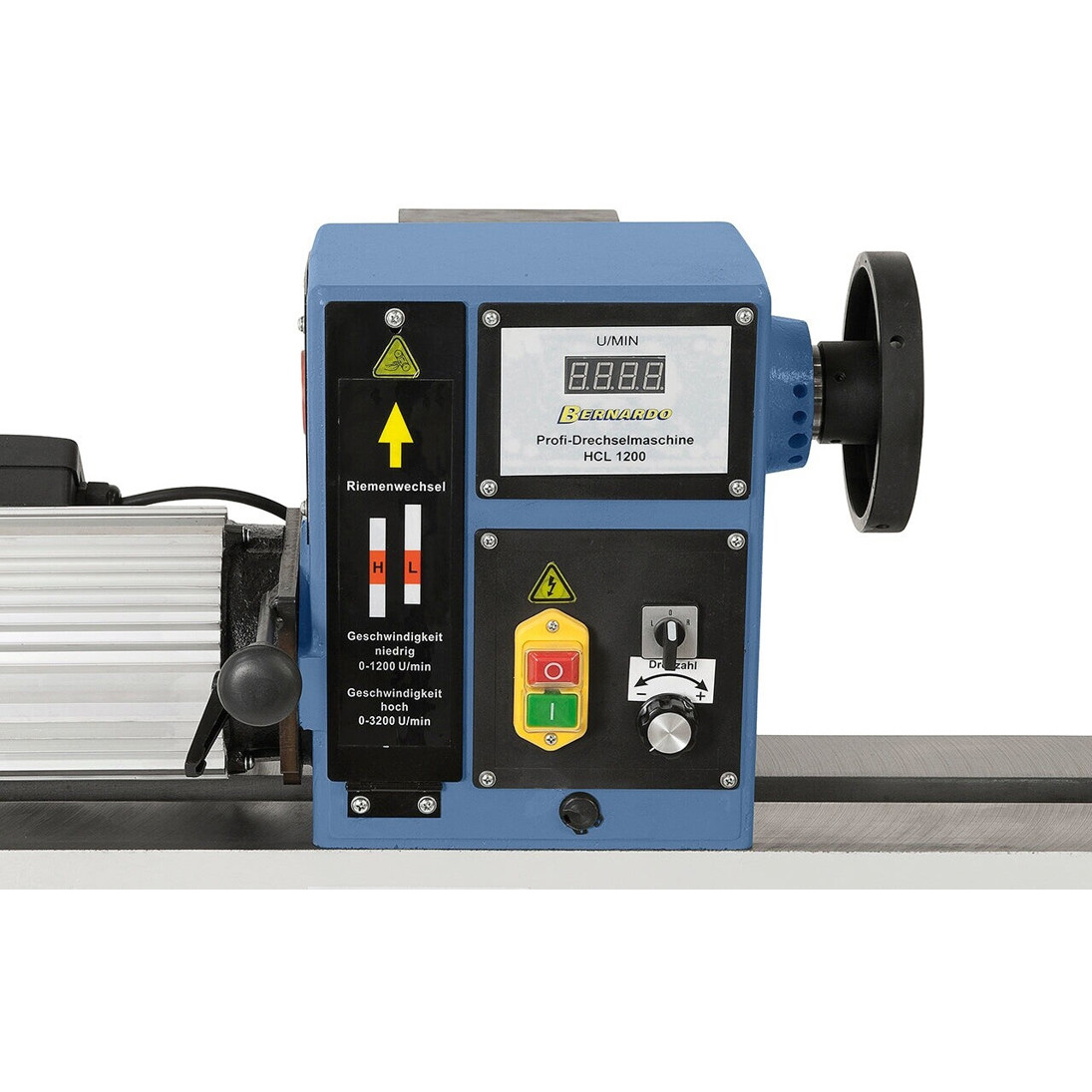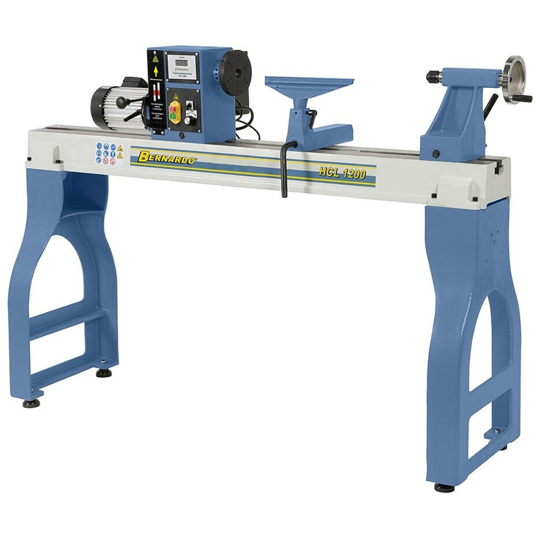 Erleben Sie die Vielseitigkeit und Leistungsstärke der Bernardo HCL 1200 Drechselbank. Mit einem stilvollen blauen Gehäuse fügt sich dieses robuste Gerät perfekt in Ihre Werkstatt ein.
