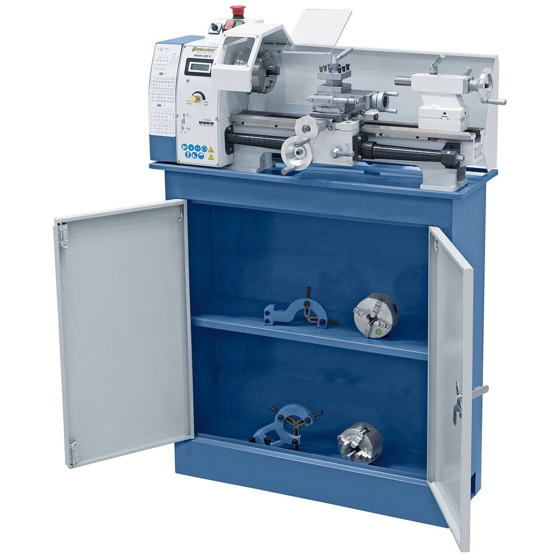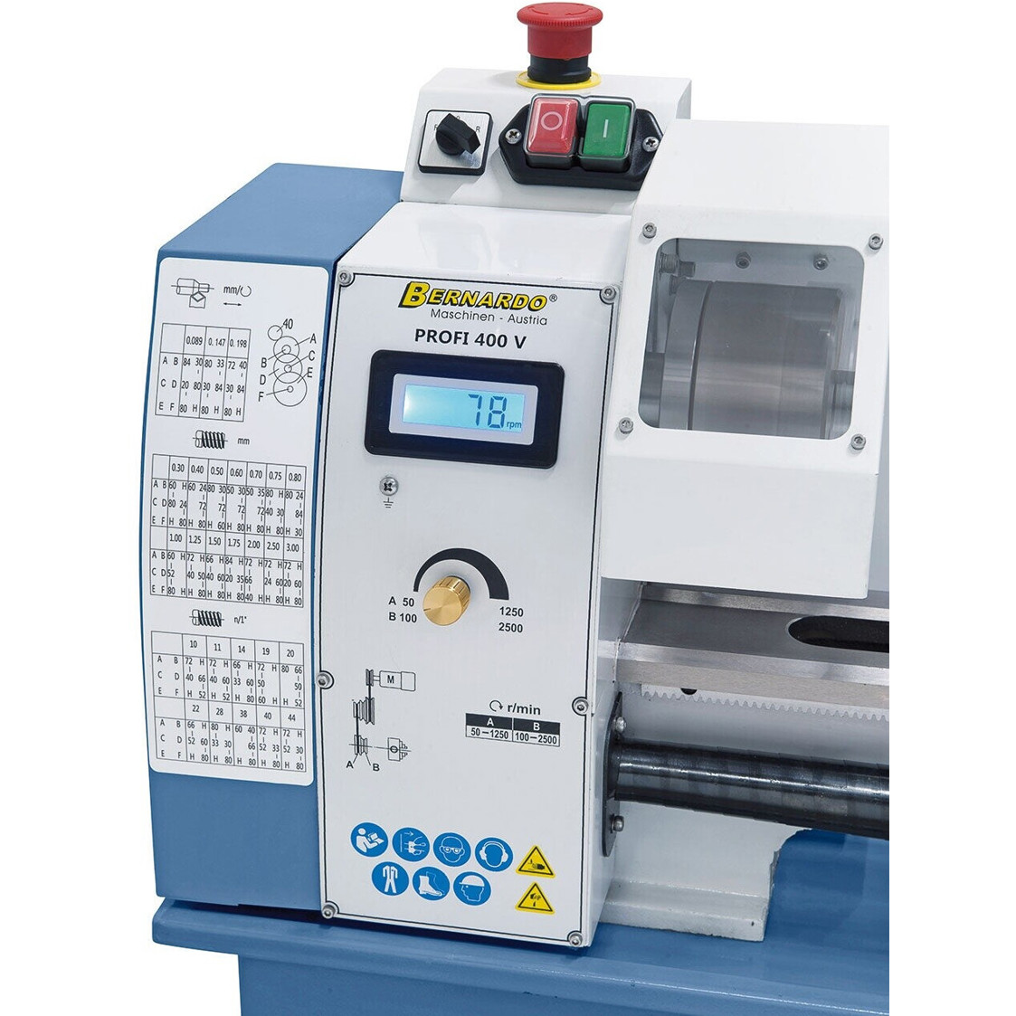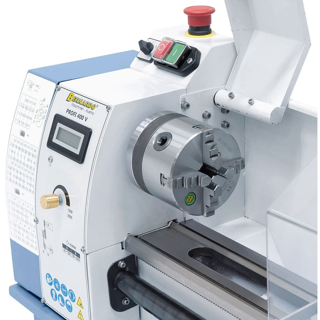 Entdecken Sie die Bernardo Profi 550 WQ 400 V, eine leistungsstarke Metalldrehbank, die für professionelle Anwendungen konzipiert wurde. Mit einer auffälligen blauen Gehäusefarbe und einer beeindruckenden Leistung von 1.000 Watt ist dieses Gerät nicht nur optisch ansprechend, sondern auch äußerst funktional.