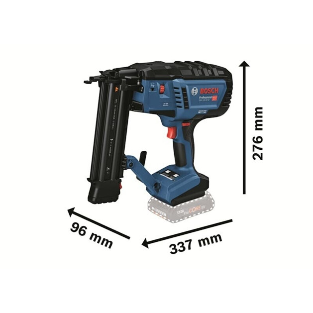 Bosch GNH 18V-50 M Solo ist der ideale Akku-Nagler für professionelle Anwender, die Wert auf Qualität und Leistung legen. Mit einer Akkuspannung von 18 V und einem Gewicht von nur 2,9 kg ist dieser Nagler sowohl leistungsstark als auch handlich. Er kommt in einem ansprechenden blauen und schwarzen Gehäuse, das nicht nur robust, sondern auch stilvoll ist.