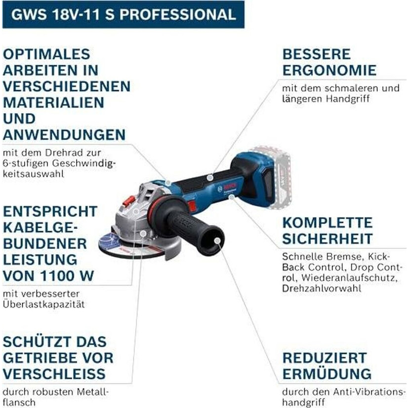 Bosch GWS 18V-11 S - Akku-Winkelschleifer (06019N4002)