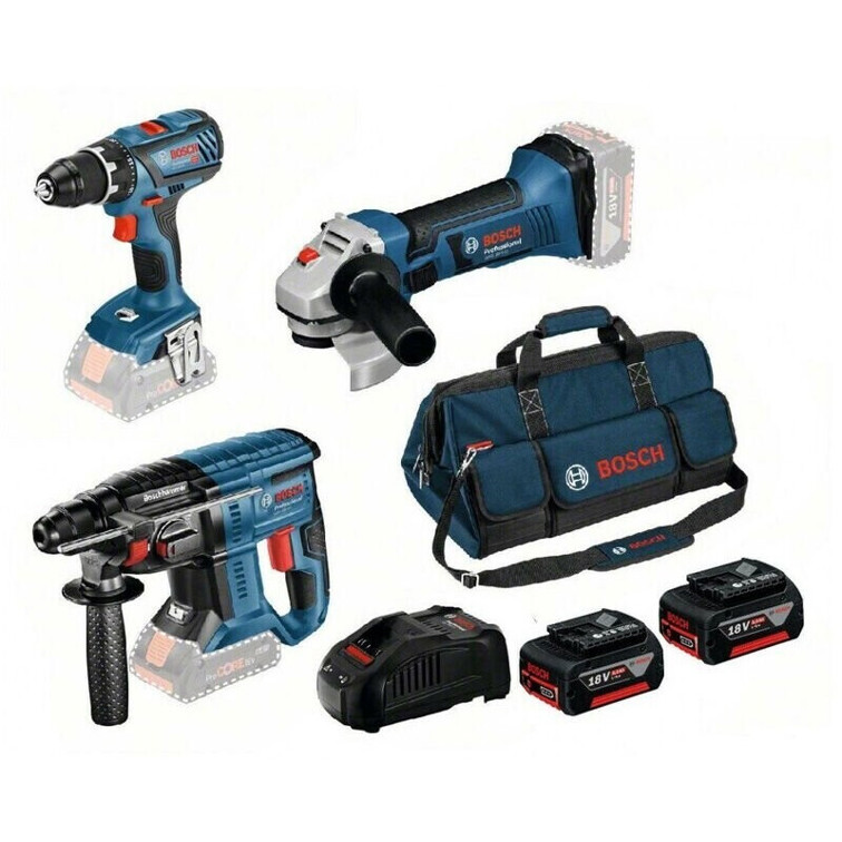 Entdecken Sie die Vielseitigkeit des Bosch 0615990M0W Akku-Maschinensets, das für jeden Heimwerker und Profi unverzichtbar ist. Dieses Set enthält einen leistungsstarken Akku-Bohrschrauber (GSR 18V-28), einen Akku-Kombihammer und einen Akku-Winkelschleifer, die Ihnen bei verschiedenen Projekten zur Seite stehen.