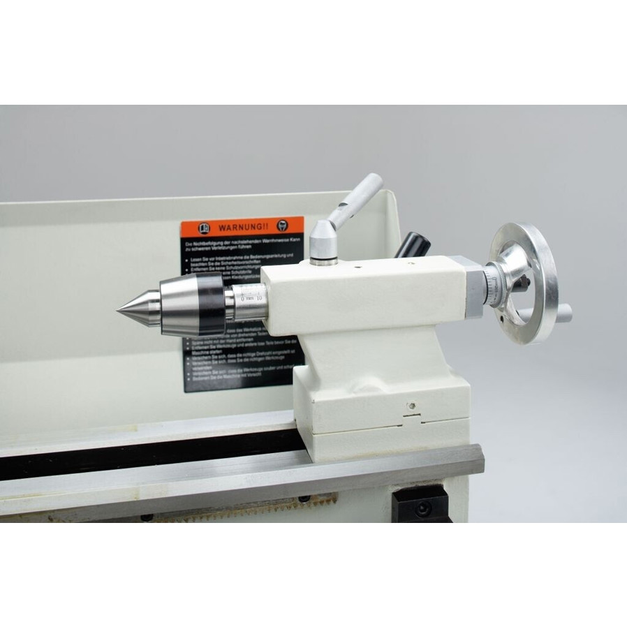 Im Lieferumfang sind eine feste Körnerspitze MK2, eine feste Körnerspitze MK3, ein 3-Backen-Futter, ein Drehfutterschutz, eine Spänewanne, eine Werkzeugbox, eine Bedienungsanleitung und eine Spritzschutzwand enthalten – alles, was Sie benötigen, um sofort loszulegen!