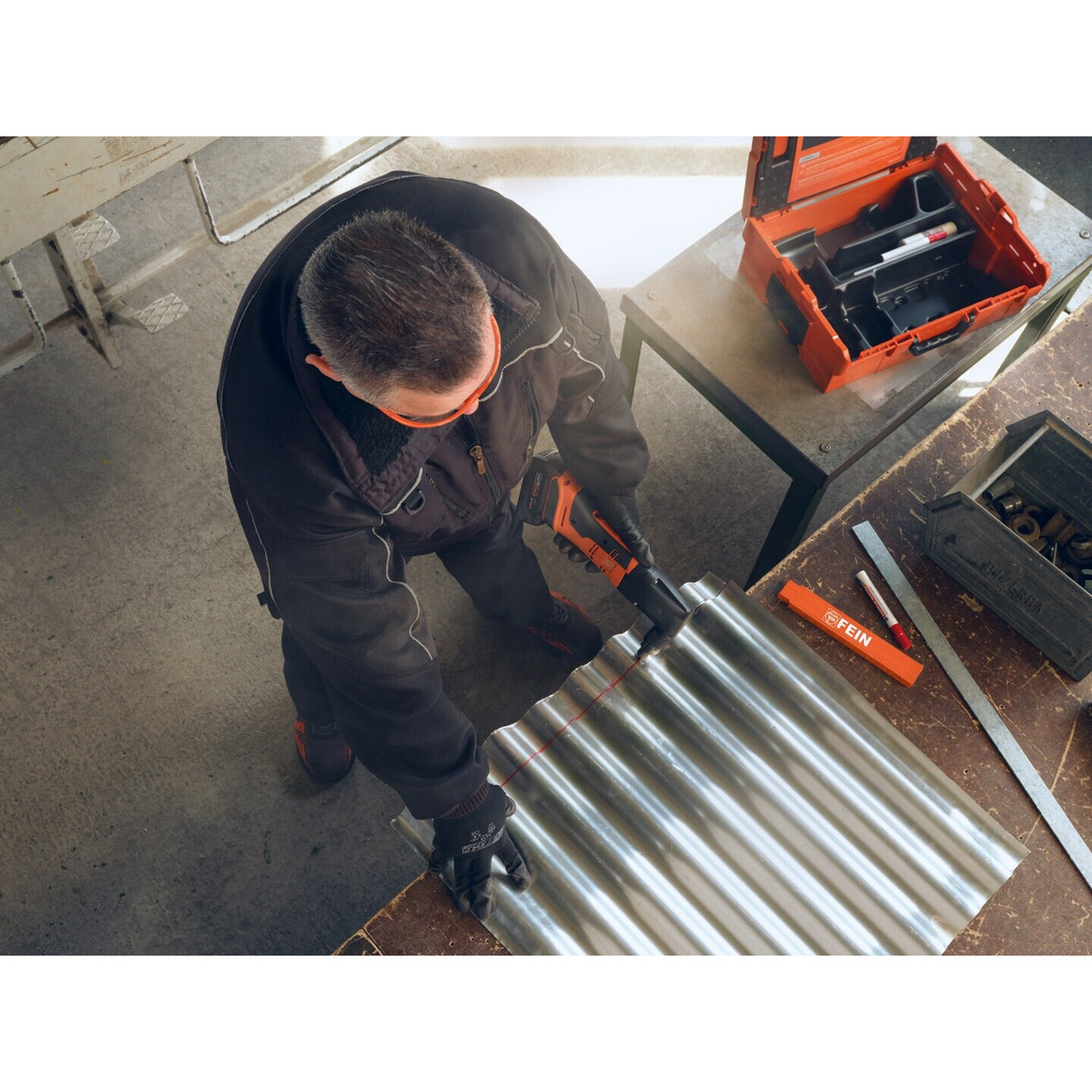 Der Fein ABLK 18 1.6 E AS setzt neue Maßstäbe in der Schnittleistung, mit einer Leerlaufhubzahl von 1.350 Hüben pro Minute und einer Schnittgeschwindigkeit von 1,5 m/min können Sie mühelos durch Materialien wie Stahl und Aluminium schneiden. Zudem bietet der speziell entwickelte, 360° drehbare Knabberkopf eine optimale Flexibilität, um auch anspruchsvolle Schnitte mit einem minimalen Schnittradius von nur 30 mm durchführen zu können.