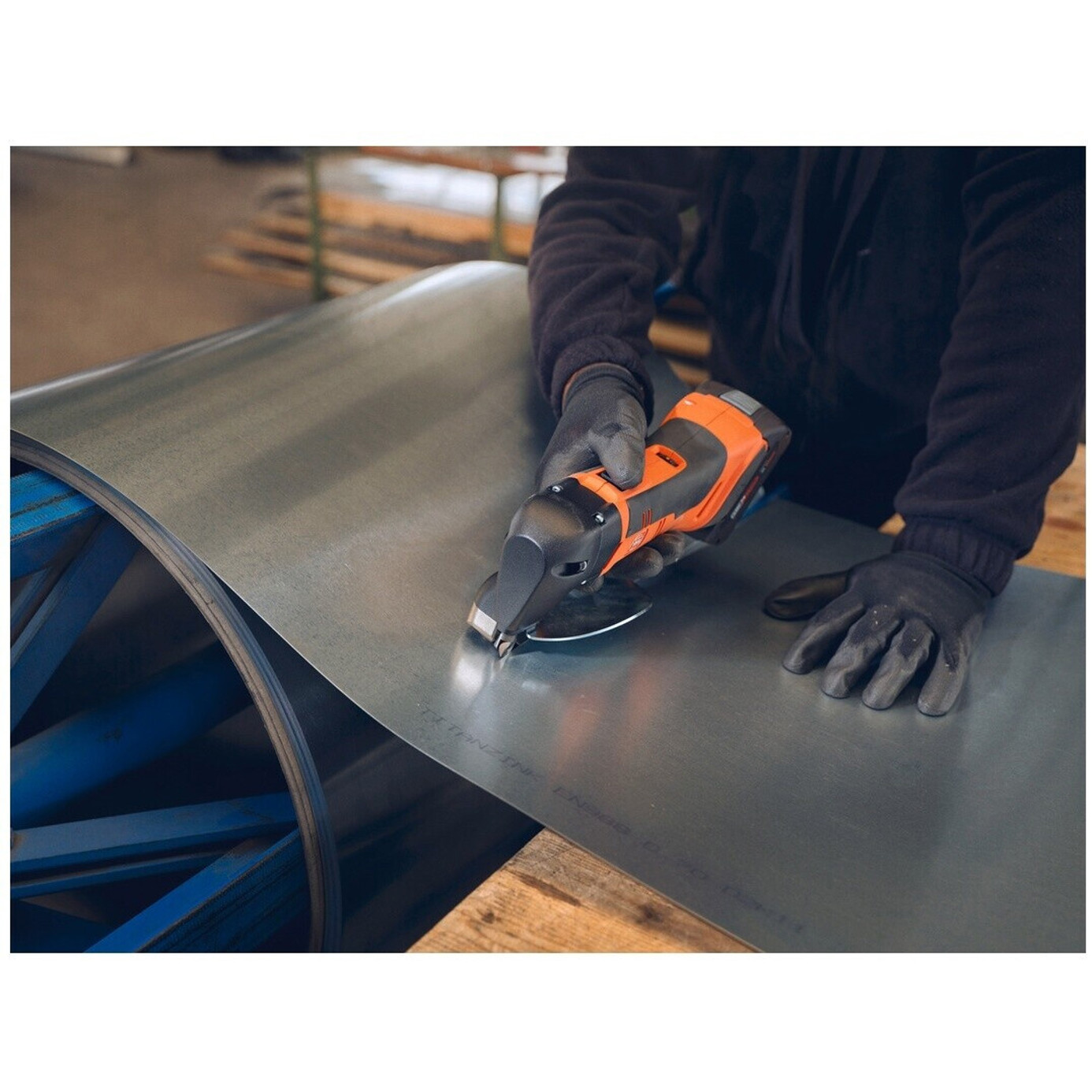 Mit einem Gewicht von nur 1,4 kg liegt die Schere angenehm in der Hand und ermöglicht ein ermüdungsfreies Arbeiten auch über längere Zeiträume. Die auffällige Gehäusefarbe in Orange sorgt nicht nur für Sichtbarkeit, sondern auch für ein ansprechendes Design.