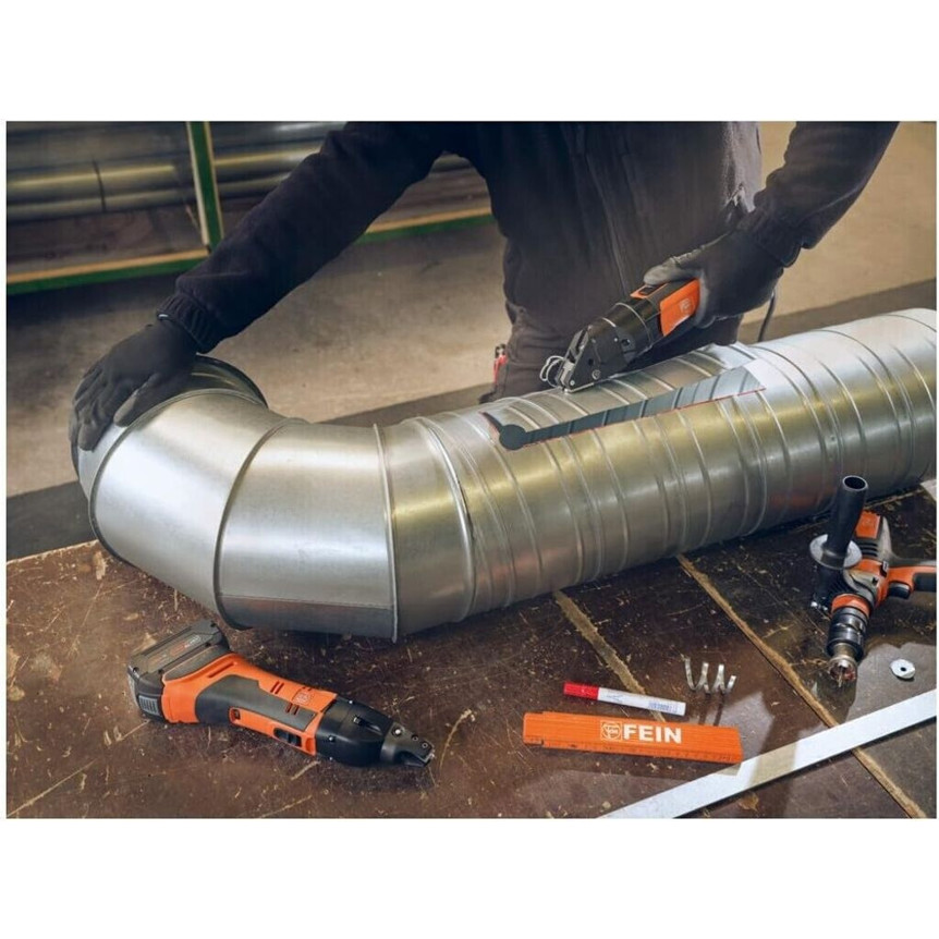 Entdecken Sie die Fein BSS 2.0 E, die perfekte Lösung für alle Ihre Blechschneidanforderungen. Mit ihrem auffälligen orangefarbenen Gehäuse ist dieses leistungsstarke Gerät nicht nur ein Blickfang, sondern auch überaus funktional.
