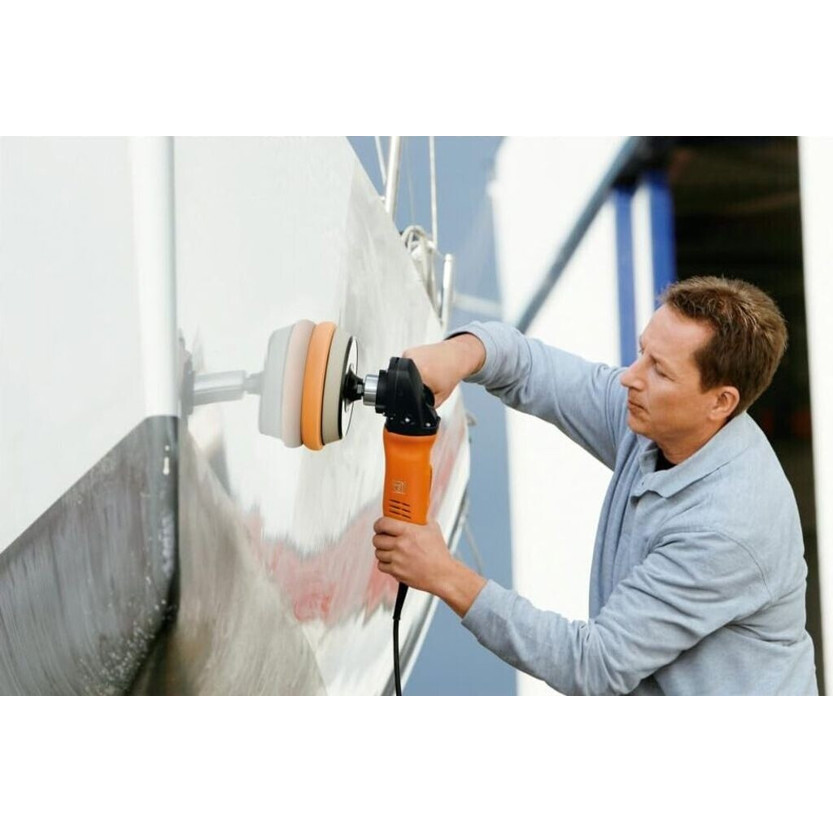 Mit einem Gewicht von nur 2,4 kg liegt der Fein WPO 14-15 E angenehm in der Hand und lässt sich auch über längere Zeit ohne Ermüdung führen. Der Scheibendurchmesser von 250 mm und die Eignung für Materialien wie Kunststoff und Lack machen ihn zur perfekten Wahl zum Polieren.