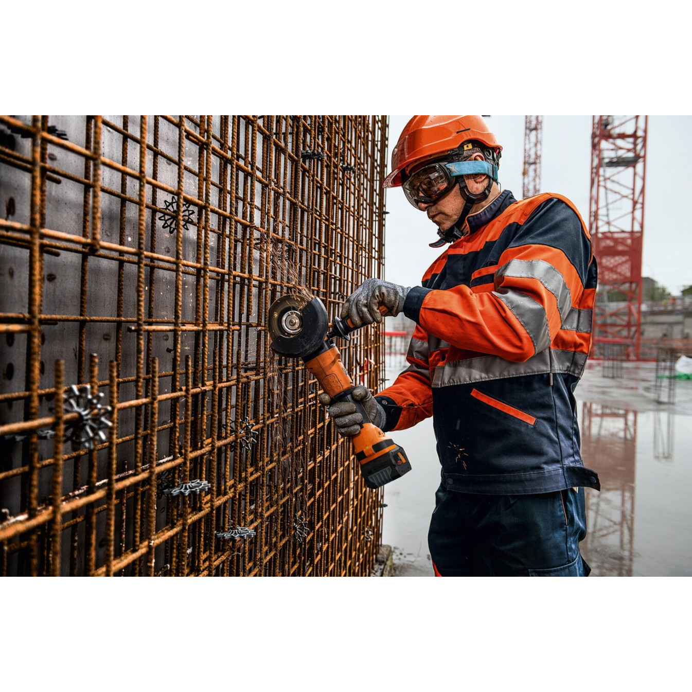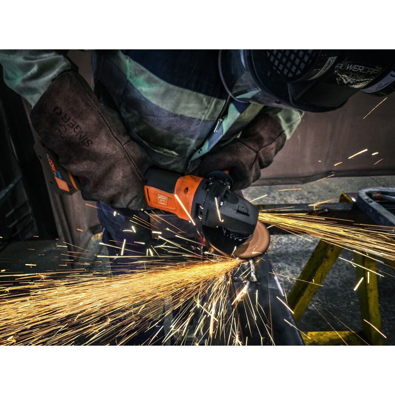 Das robuste orangefarbene Gehäuse ist nicht nur auffällig, sondern auch strapazierfähig. Mit einem Gewicht von nur 2,4 kg liegt der Winkelschleifer gut in der Hand und ermöglicht ein komfortables Arbeiten über längere Zeiträume.