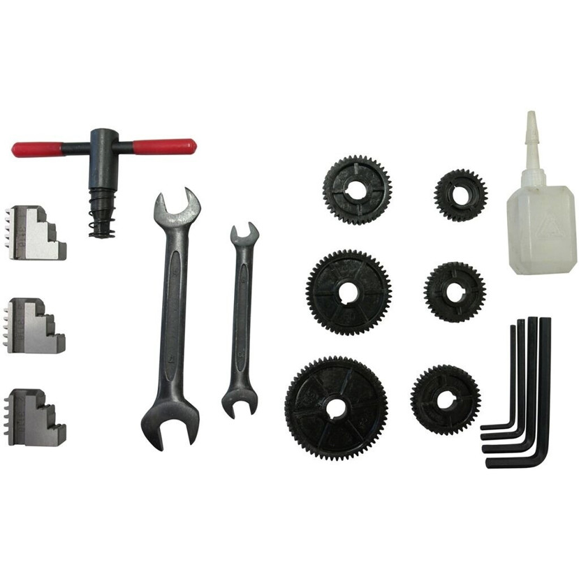 | Ausstattung: | Zentrierspitze, Sechskantschlüssel, Ölflasche, Dreibackenfutter, Wechselbacken |