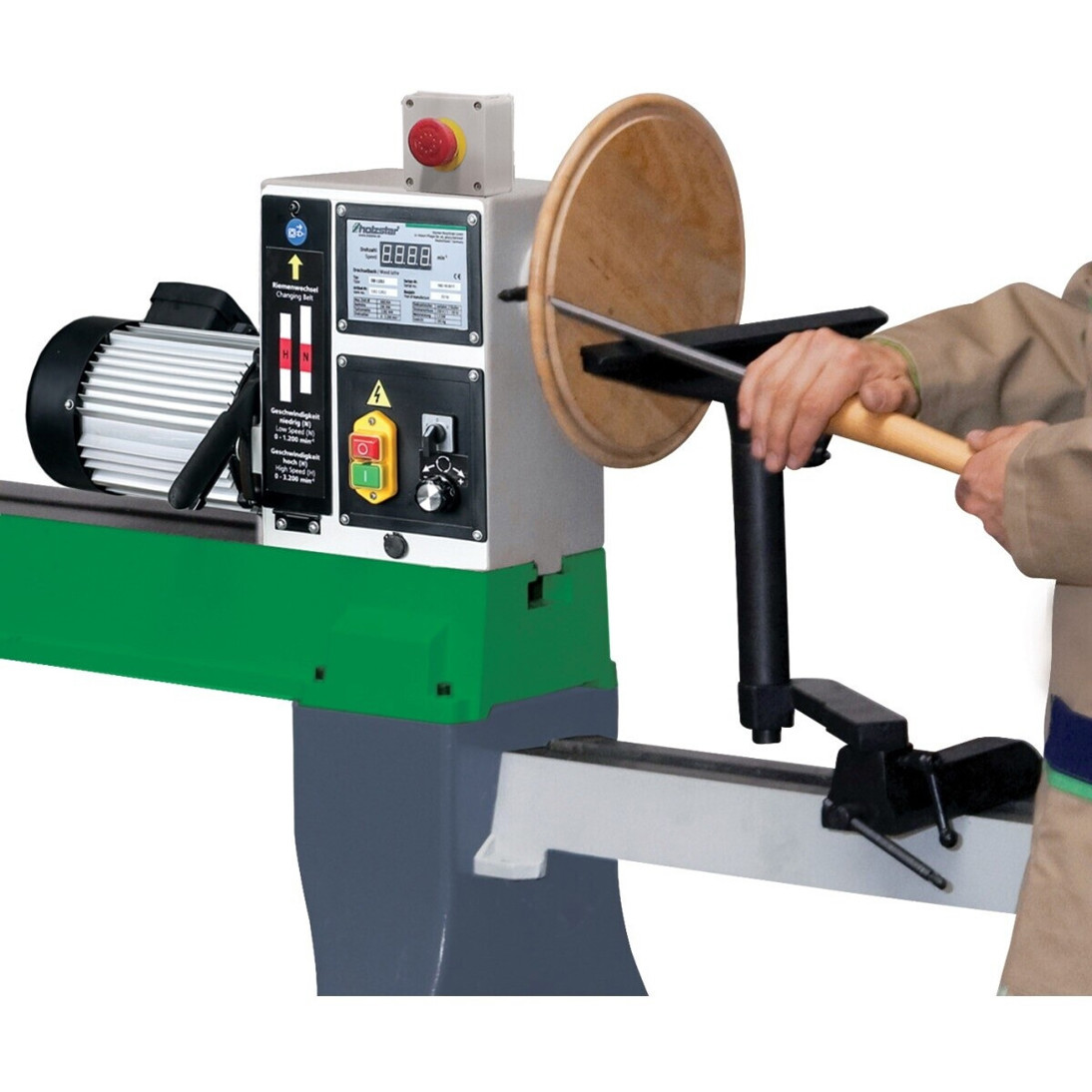 Die 2-stufige Drehzahlregelung ermöglicht es Ihnen, die max. Drehzahl von 3.200 U/min präzise anzupassen, was Ihnen vollständige Kontrolle über Ihre Projekte gibt. Sie können Werkstücke mit einem max. Durchmesser von 460 mm bearbeiten, was die Vielseitigkeit dieser Drechselbank weiter erhöht.