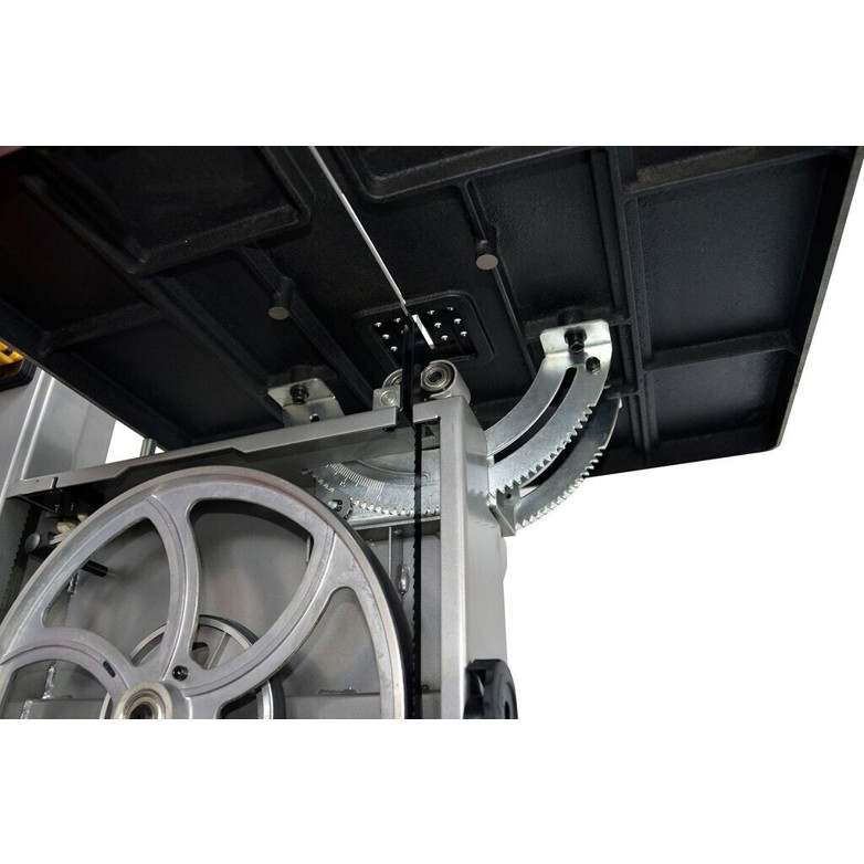 Die Sägebandbreite von 25 mm ermöglicht Ihnen den Einsatz von Sägebändern mit Breiten zwischen 6 und 25 mm, sodass Sie für jede Aufgabe das passende Band wählen können. Zudem ist der Sägetisch schwenkbar bis 45° über Zahnsegment, was fokussiertes Arbeiten bei verschiedenen Schnittwinkeln erleichtert.