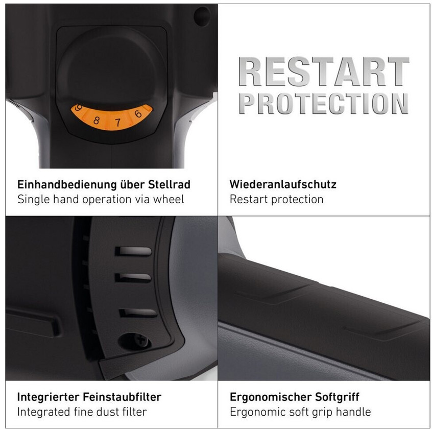 Der Steinel HM 2600 E bietet eine beeindruckende Temperaturregelung mit maximalen Temperaturen von bis zu 620 °C und einer minimalen Temperatur von 50 °C. Dank der 9-stufigen Temperaturstufen können Sie die Wärme genau nach Ihren Bedürfnissen anpassen. Mit einem maximalen Luftstrom von 550 l/min ist er äußerst effizient und sorgt für optimale Ergebnisse.